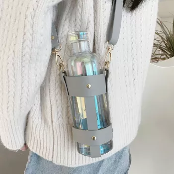 500ml Glass Water Bottle with PU Cup Holder & Time Marker