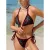 Our string bikini features a classic triangle top with adjustable halter ties, allowing you to customize the fit to your body. The matching bottoms offer a flattering low waist, perfect for showcasing your curves. Made from high-quality spandex and polyester, this swimsuit is both comfortable and durable, ensuring it will be a staple in your summer wardrobe for seasons to come.